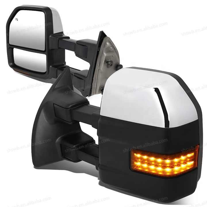 For 2008 to 2016 Ford F250 / F350 / F450 / F550 Super Duty Pair w / LED Turn Signal Light Heated Chrome Powered Towing Mirror