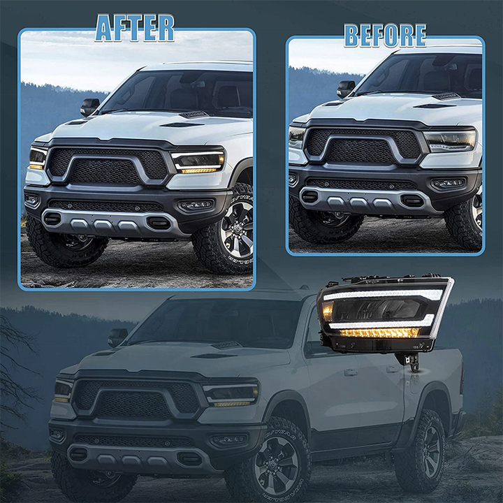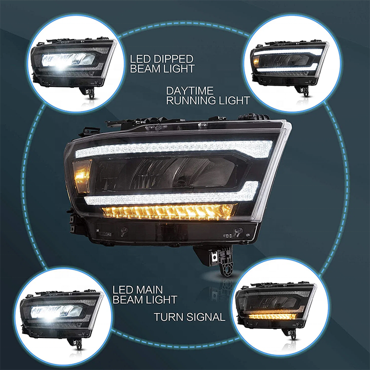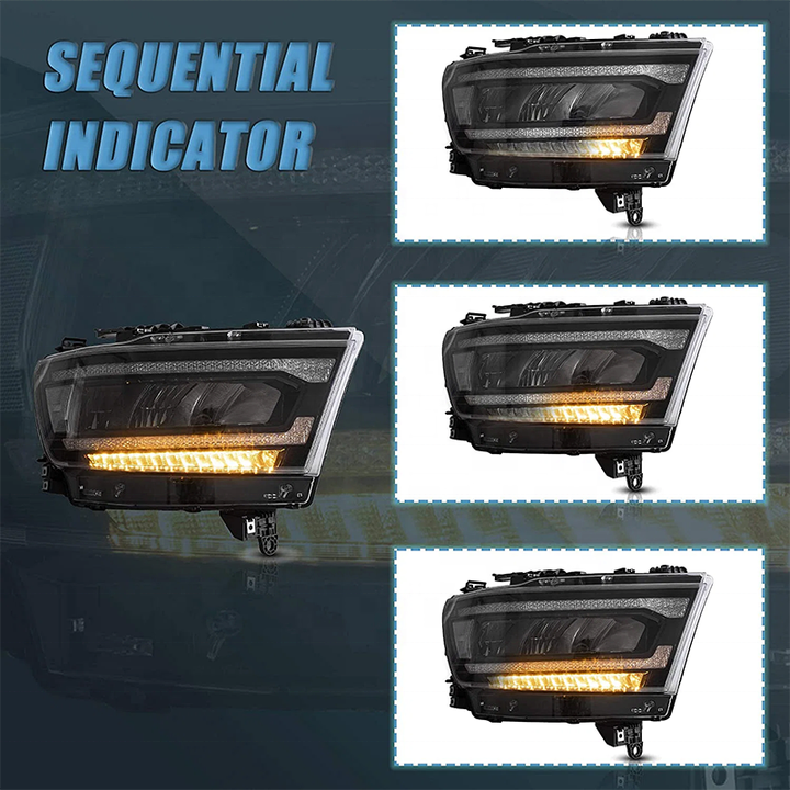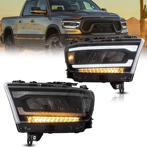PK Car Head Lamp Assembly For 2019-2023 Dodge RAM 1500 With Reflectors Sequential Turn Signal Full LED Headlights